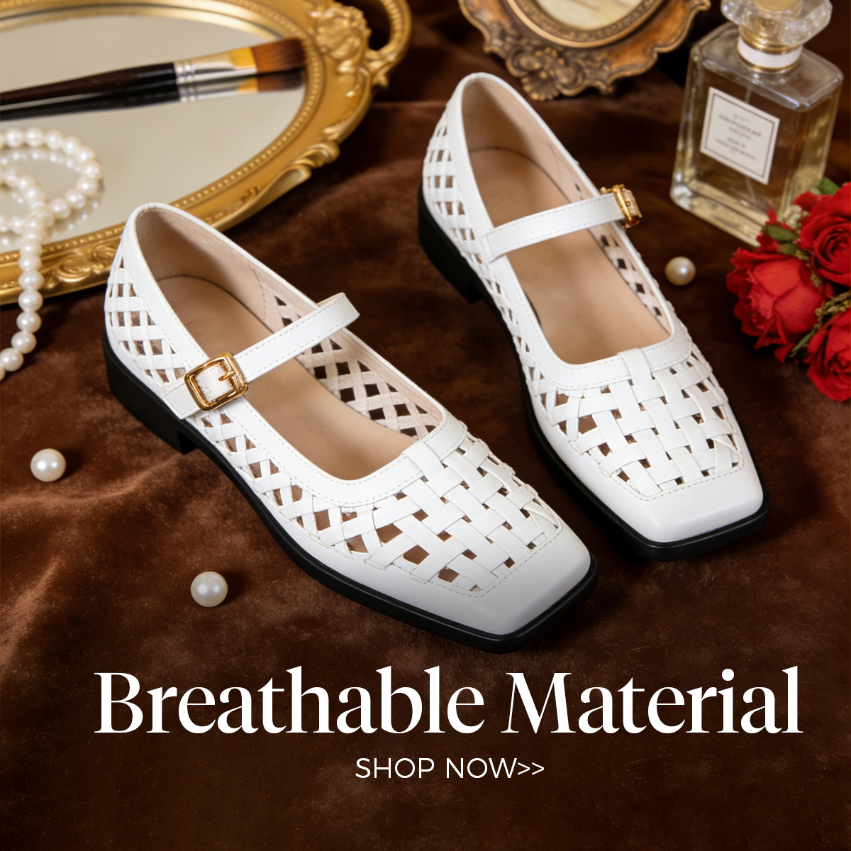 Woven Mary Jane Flat - White