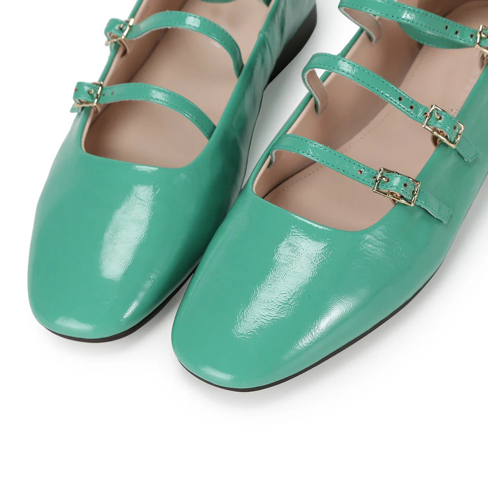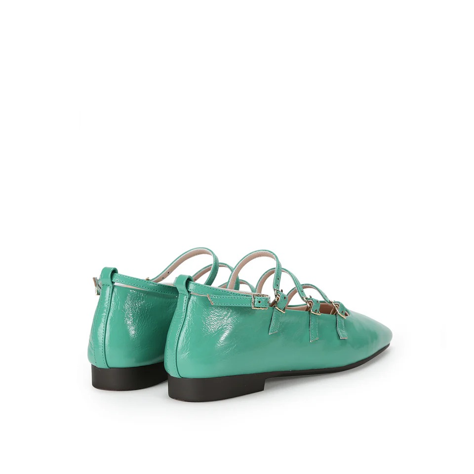 -Glossy patent lamb leather heeled flat