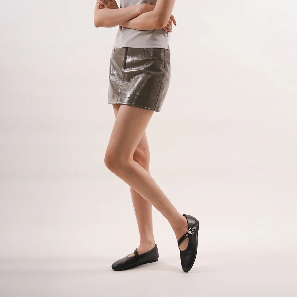 - Slanted Mary Jane strap with bold eyelets