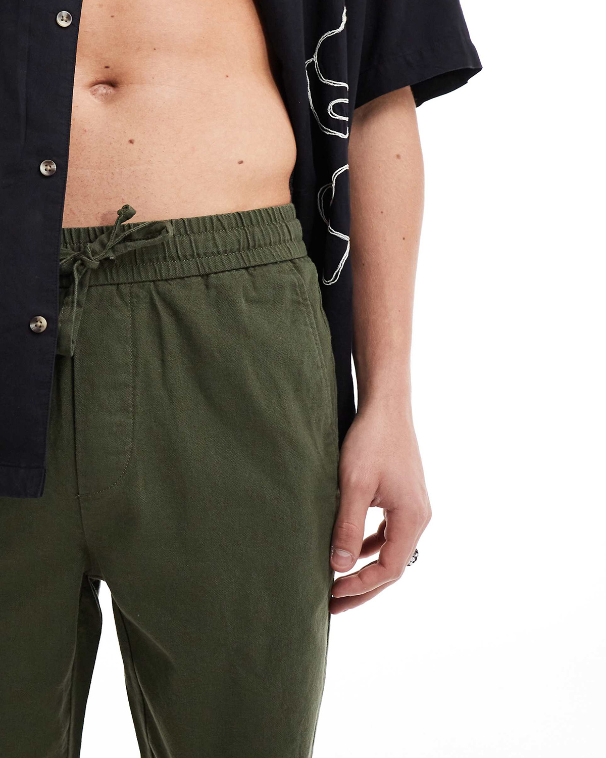 - Elasticated drawstring waist